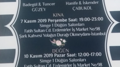 BU MUTLU GÜNÜMÜZDE SİZ DOSTLARIMIZI ARAMIZDA GÖRMEKTEN MUTLULUK DUYARIZ… DÜĞÜN: 10 Kasım 2019 Pazar Saat:12:00 – 17:00Adres: Simge 1 Düğün Salonları Fatih Sultan…