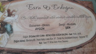 BU MUTLU GÜNÜMÜZDE SİZ DOSTLARIMIZI ARAMIZDA GÖRMEKTEN MUTLULUK DUYARIZ… DÜĞÜN: 26 Şubat 2021 Cuma Saat:18:00 – 20:00 BEYAZ KÖŞK DÜĞÜN SALONUAdres: Mevlana Mahallesi…